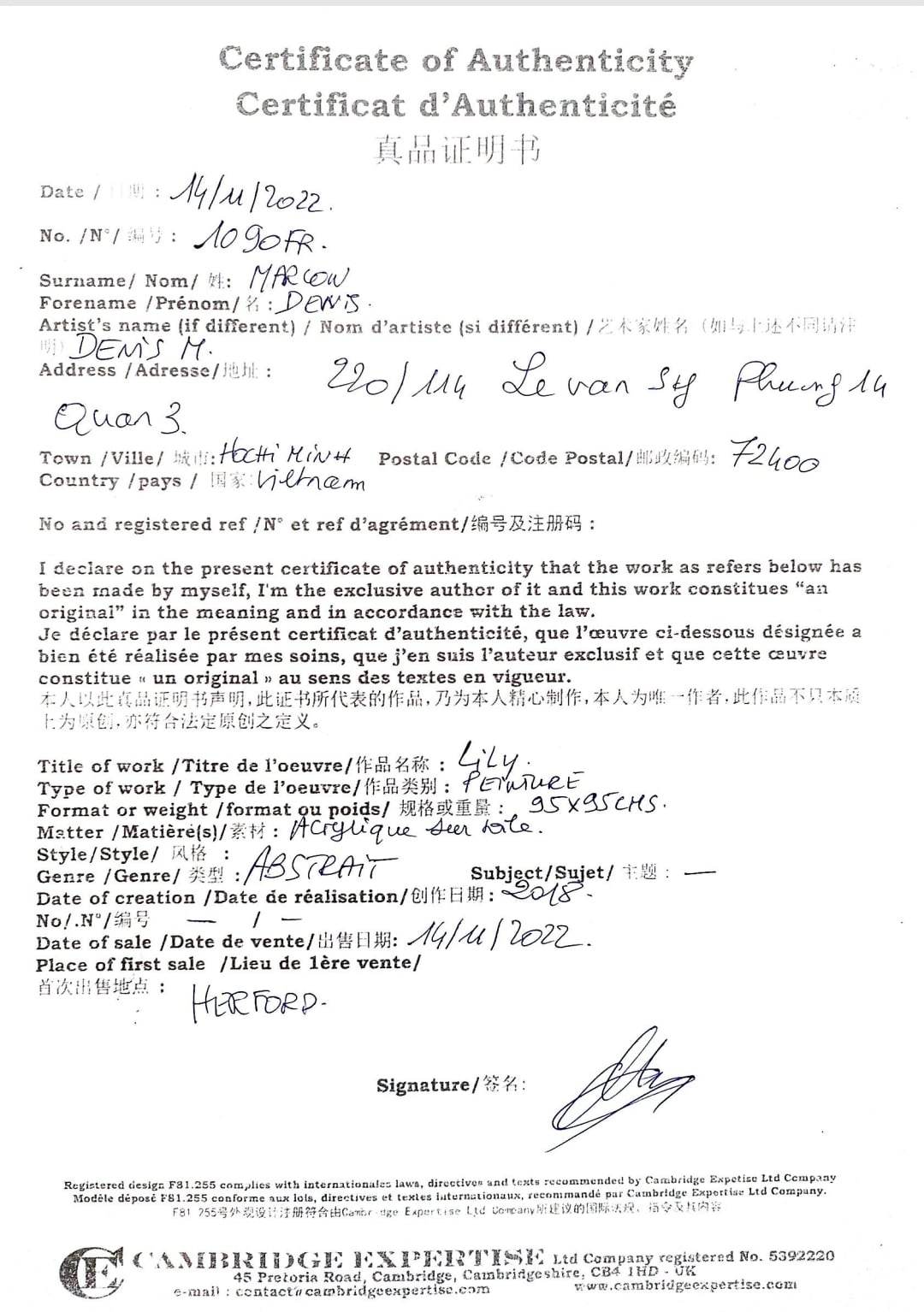DENIS MARCON - Lily (CERTIFICATE) (UNIQUE - oilpainting/acrylic)