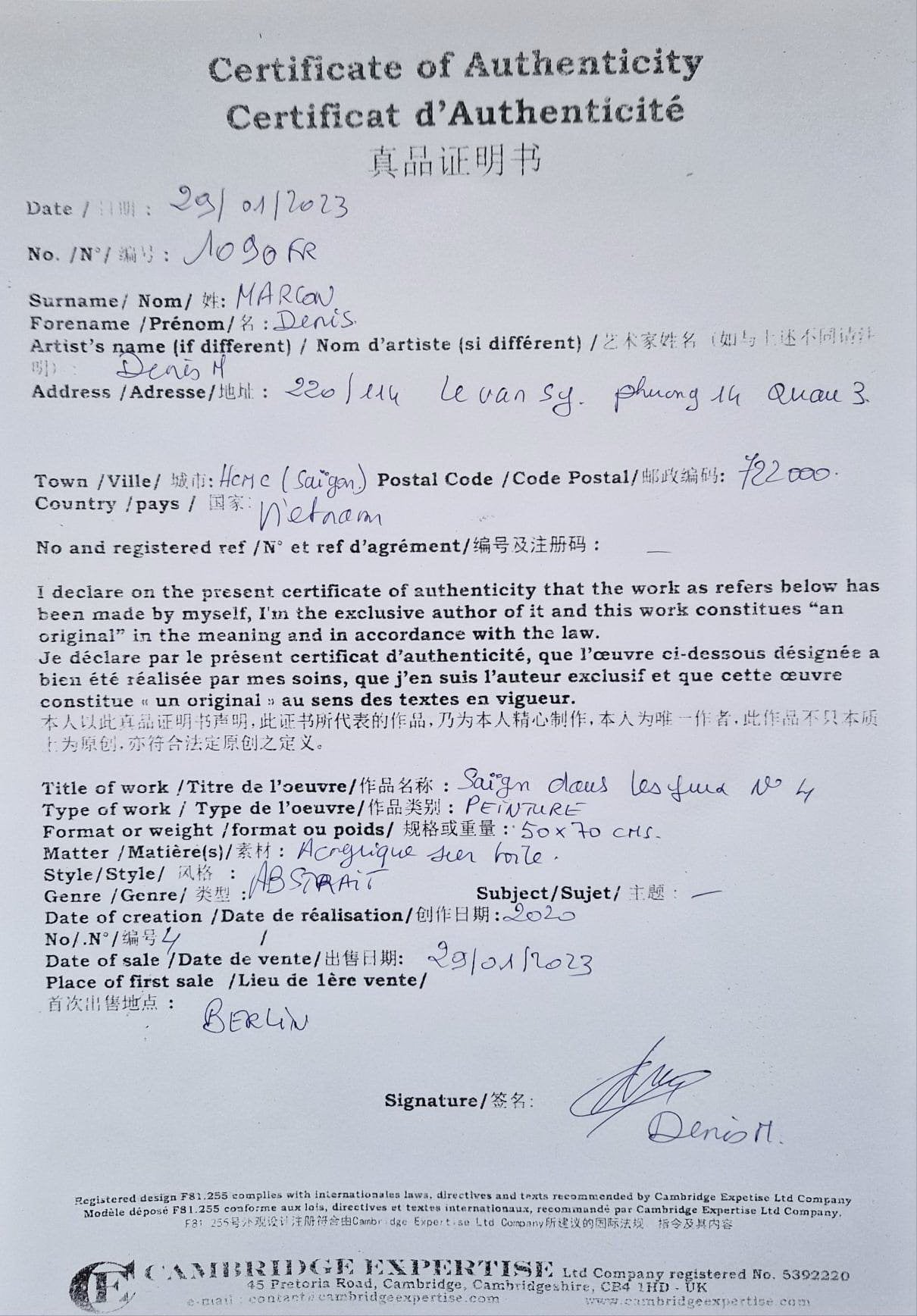 DENIS MARCON - Saigon dans les yeux N.4 (CERTIFICATE) (UNIQUE - oilpainting/acrylic)
