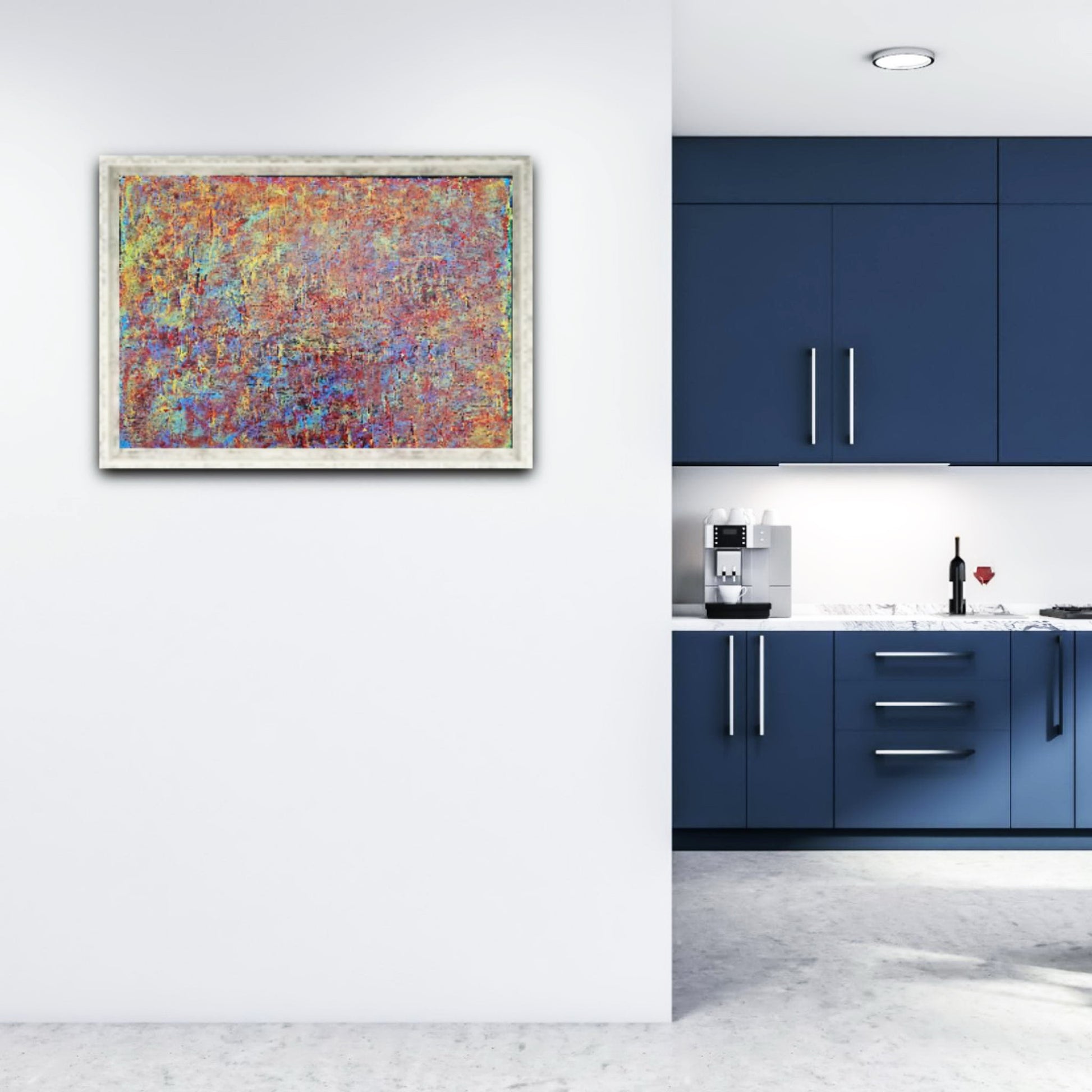 Marcon’s signature impasto technique gives the canvas incredible physical depth. Using palette knives and his own hands, he molds thick layers of oil and acrylic into a rich, three-dimensional landscape that reacts dynamically to every light change.