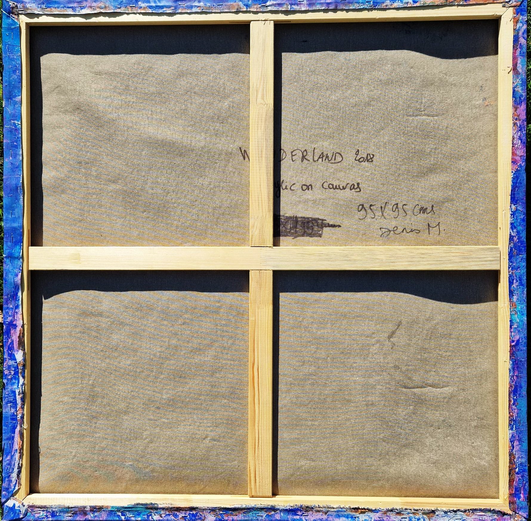Step into an ethereal realm with "Wonderland", a captivating abstract creation by renowned French artist Denis Marcon (Denis M). This expansive 100 x 100 cm (95 x 95 cm in some editions) original is a symphony of cool tones and incredible physical depth.