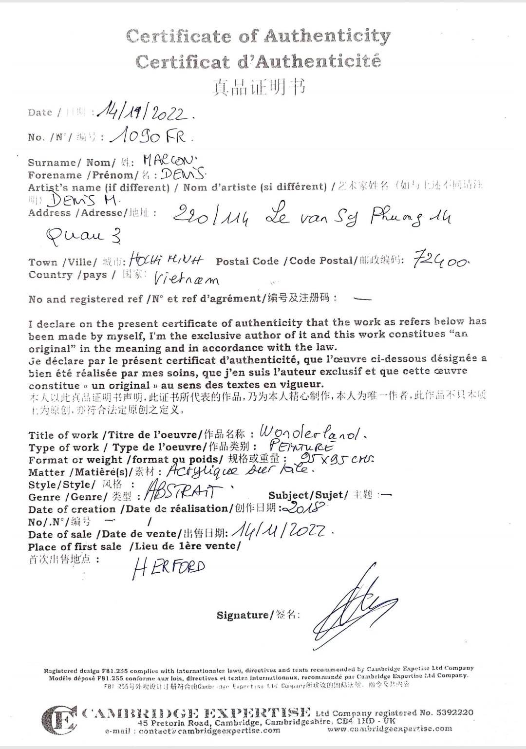 DENIS MARCON - Wonderland (CERTIFICATE) (UNIQUE - oilpainting/acrylic)