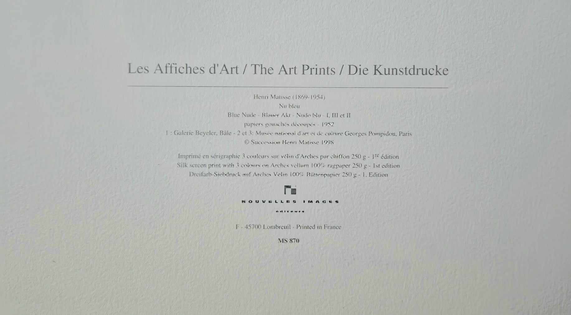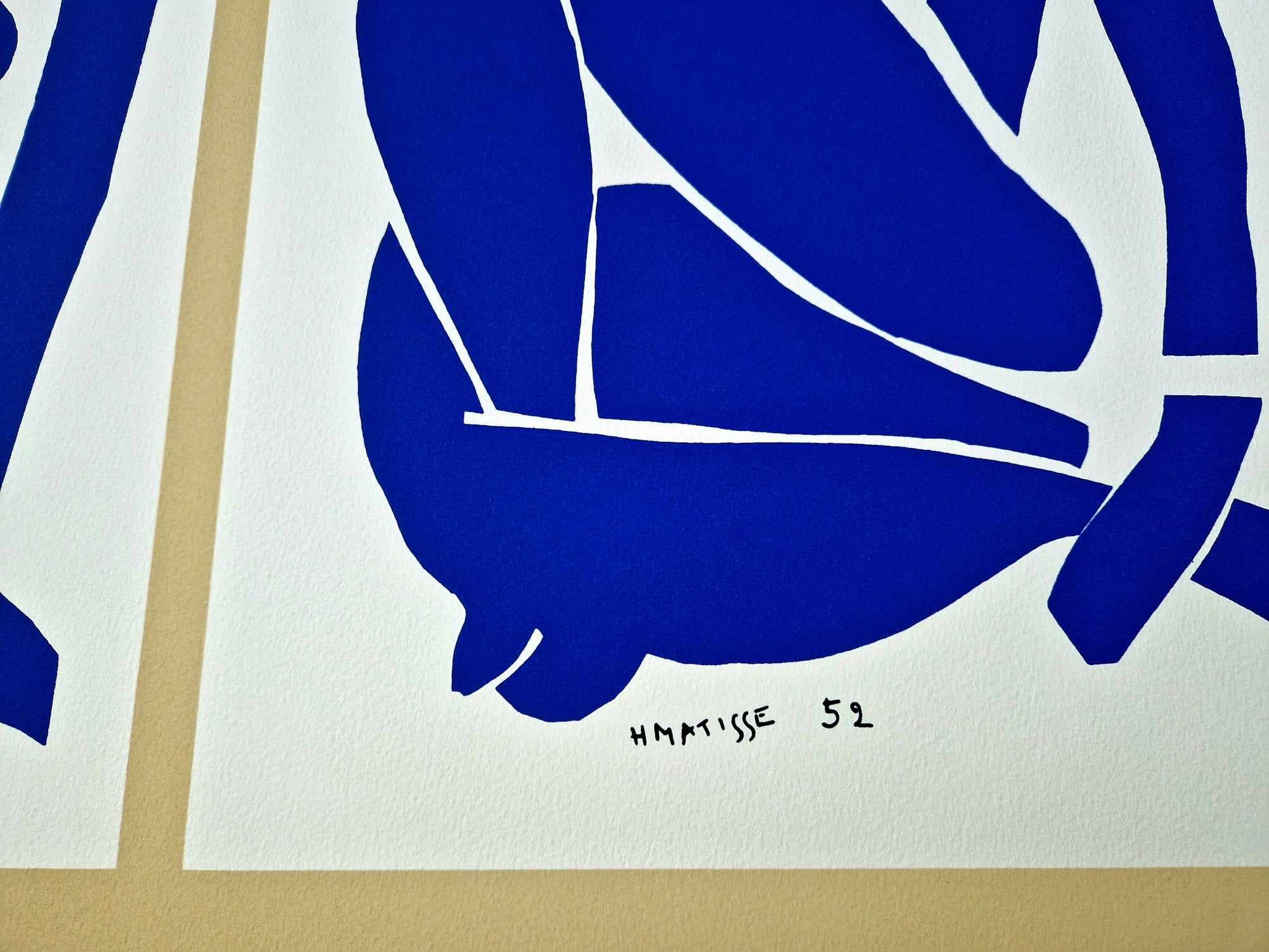 The works offered are high-quality silk screen print (serigraph) reproductions of these original cut-outs. Serigraphy is a stencil-based printing process where ink is forced through a fine mesh screen onto the paper below. This method captures the vibrant saturation and flat colours characteristic of Matisse's cut-outs.