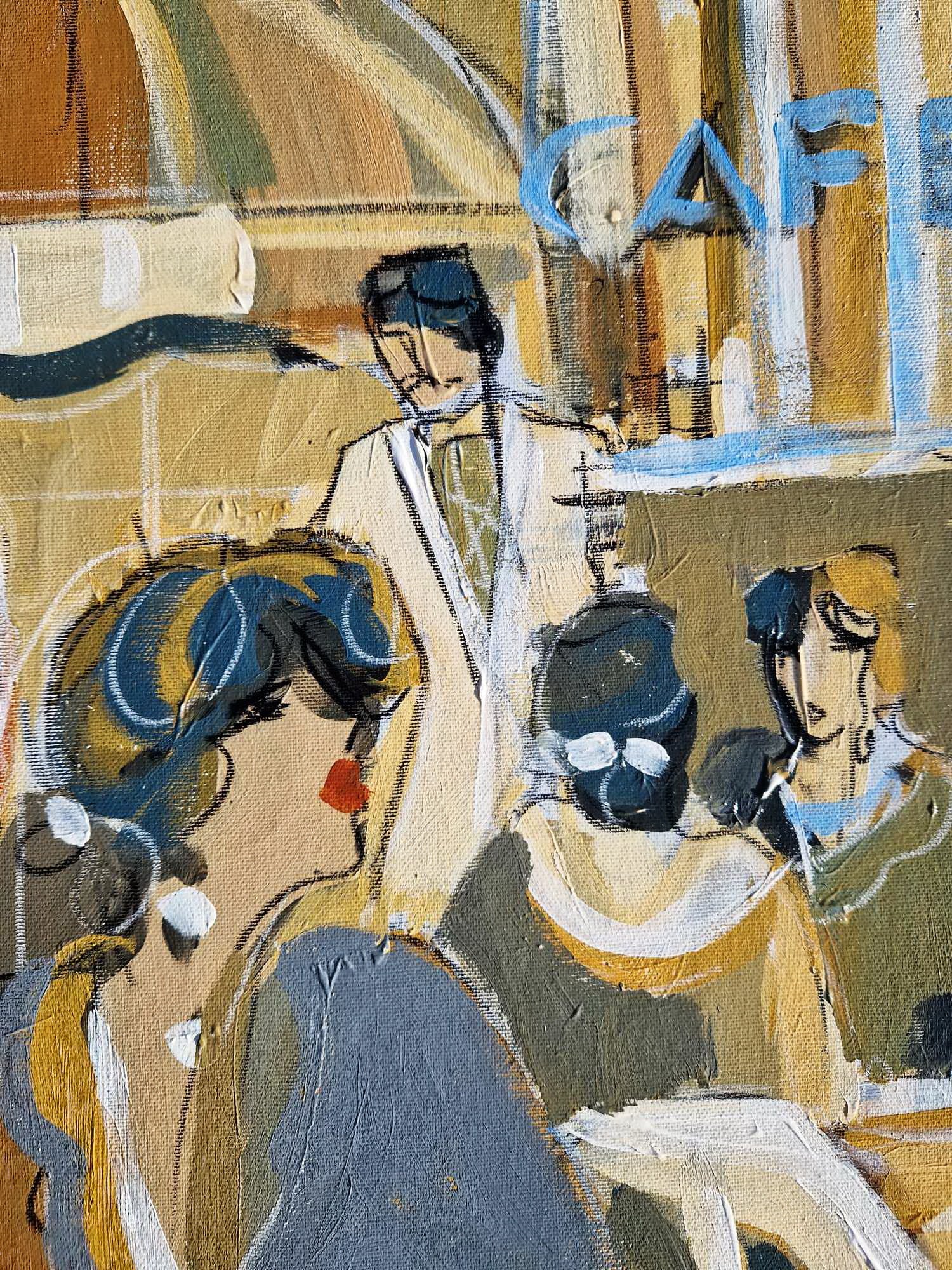 This is a unique, one-of-a-kind original oil painting on canvas by the acclaimed contemporary Israeli artist Isaac Maimon (b. 1951). These vibrant canvases capture the sophisticated "boulevard culture" and café society of Paris, a recurring theme deeply influenced by Maimon's French-speaking upbringing and his admiration for artists like Toulouse-Lautrec and Matisse.
