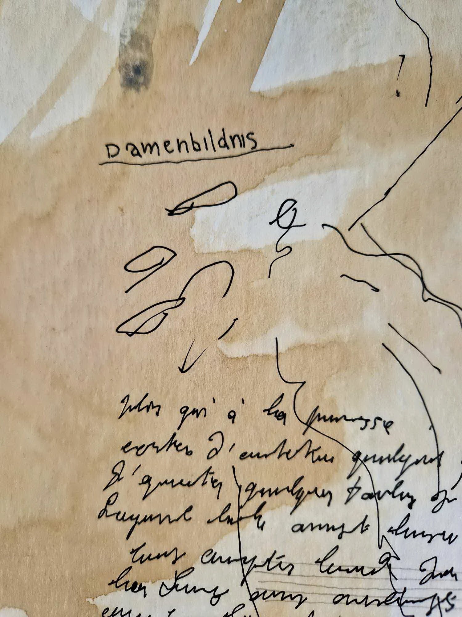 The artist titled this work "Damenbildnis" (Portrait of Ladies), as seen in the hand-inscribed text. Every brushstroke of the watercolor background is unique, making this specific piece a non-reproducible treasure for any elite art collector.