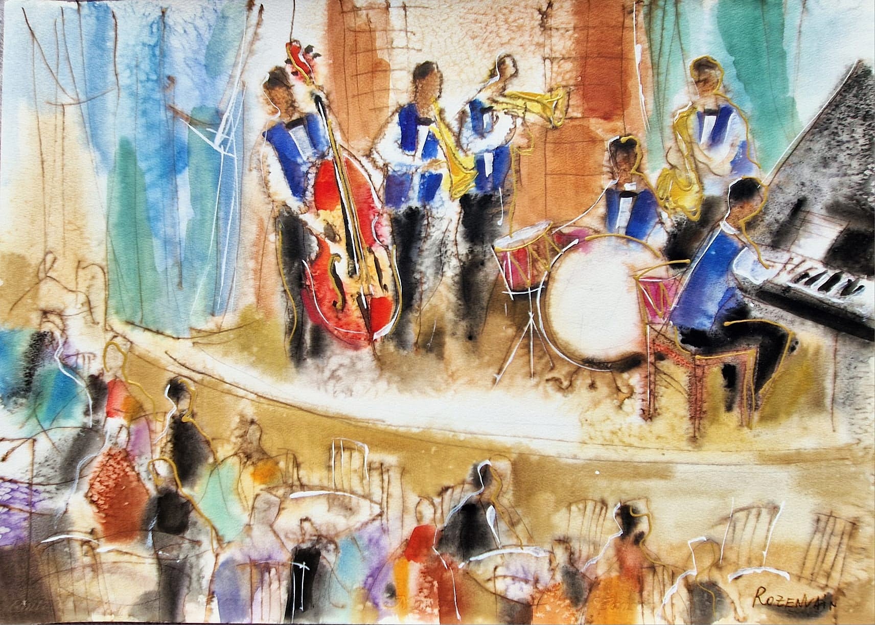 MICHAEL ROZENVAIN - Jazz Session (UNIQUE - Watercolor) (Unframed)