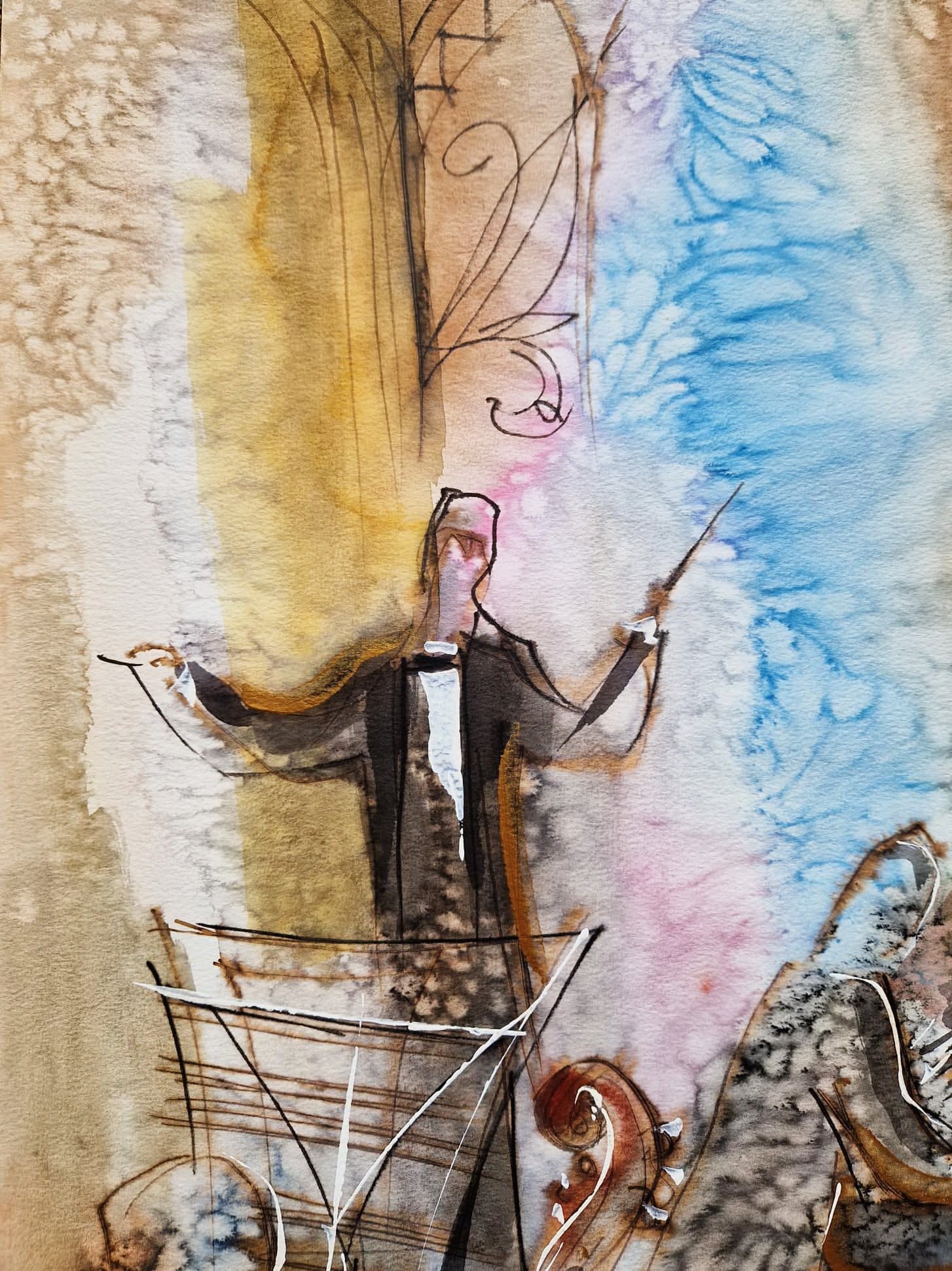 "Mozart" is a breathtaking original watercolor masterpiece that captures the rhythmic soul and vibrant energy of a grand orchestral performance. Michael Rozenvain was motivated by the timeless genius of Wolfgang Amadeus Mozart, translating the composer’s complex harmonies into a visual symphony of light and color.