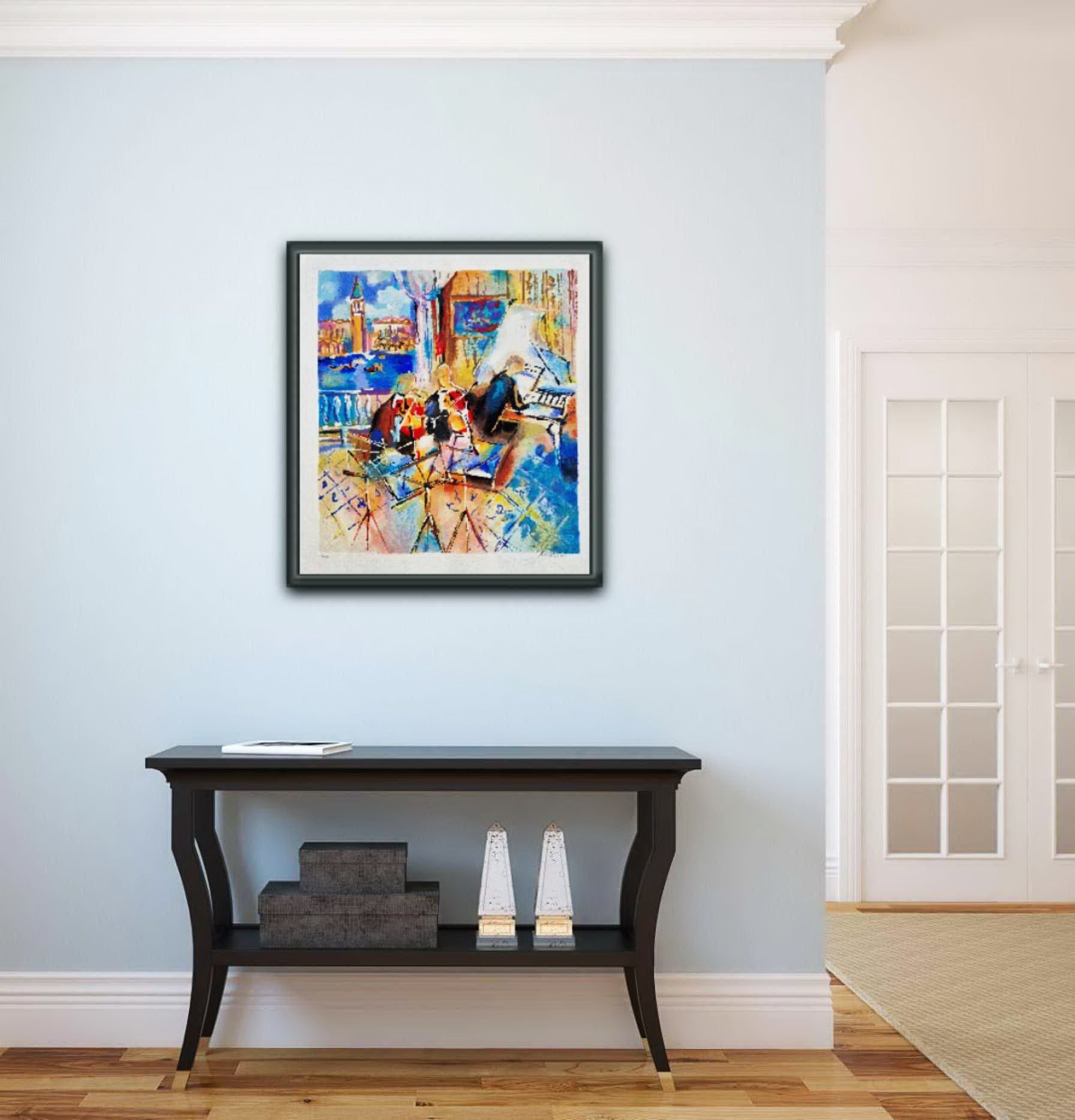 Because the ink used in serigraphy is significantly thicker than standard printing ink, the final work possesses a tangible physical presence. The colors appear to "vibrate," closely mimicking the impasto and emotional depth of Rozenvain’s original oil-on-canvas works.