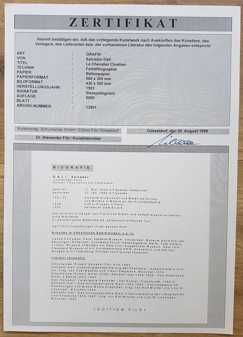 SALVADOR DALI - Le Chevalier Chretien (Certificate) (Unframed) Original lithograph by S.P.A.D.E.M (Israel)