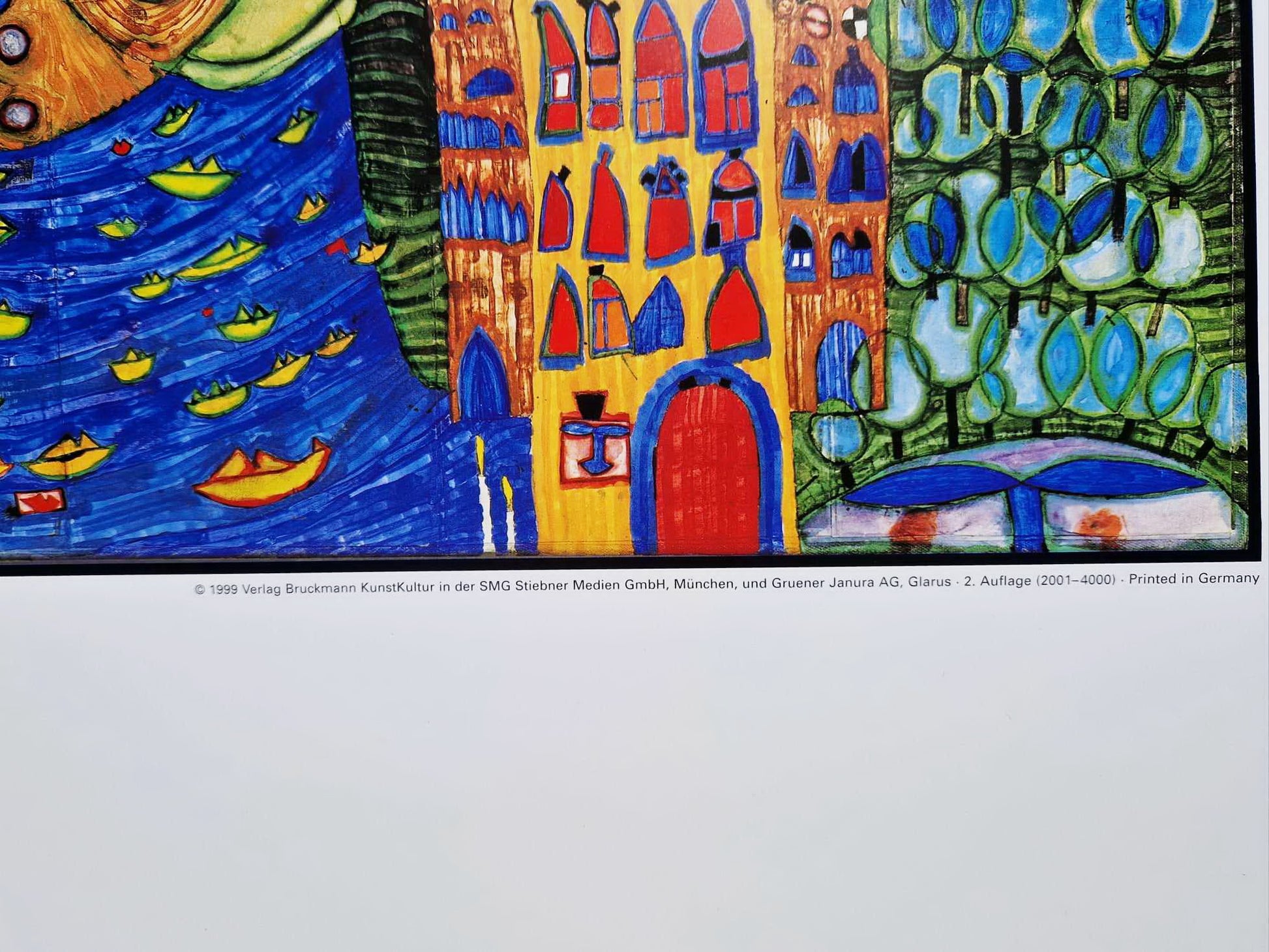 - Majstrovsky vytlačené spoločnosťou Lichtdruck AG (Švajčiarsko) a vydané vydavateľstvom DACO-Verlag Günter Bläse (Nemecko) pod priamym umeleckým dohľadom Hundertwassera.