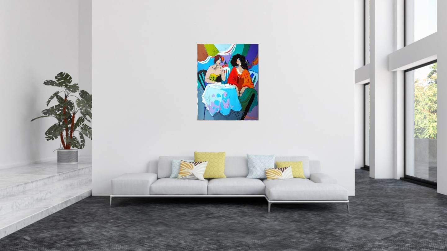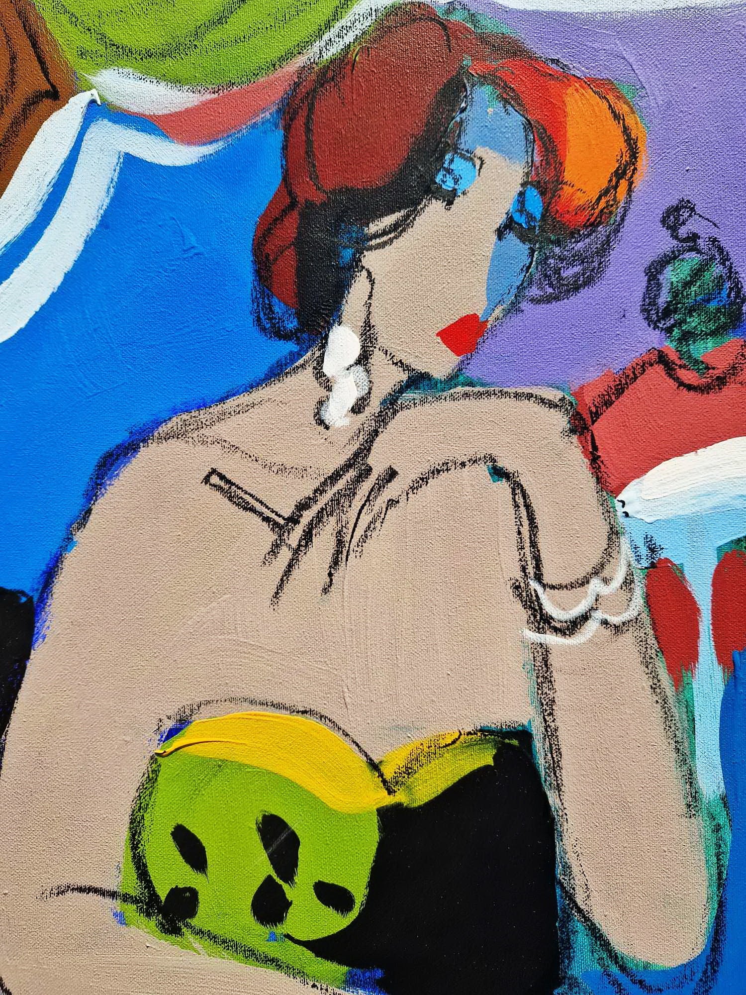 Toto je jedinečný, jedinečný originálny olejomaľba na plátne od uznávaného súčasného izraelského umelca Isaaca Maimona (nar. 1951). Tieto žiarivé plátna zachytávajú sofistikovanú „bulvárnu kultúru“ a kaviarenskú spoločnosť Paríža, opakujúcu sa tému hlboko ovplyvnenú Maimonovou frankofónnou výchovou a jeho obdivom k umelcom ako Toulouse-Lautrec a Matisse.