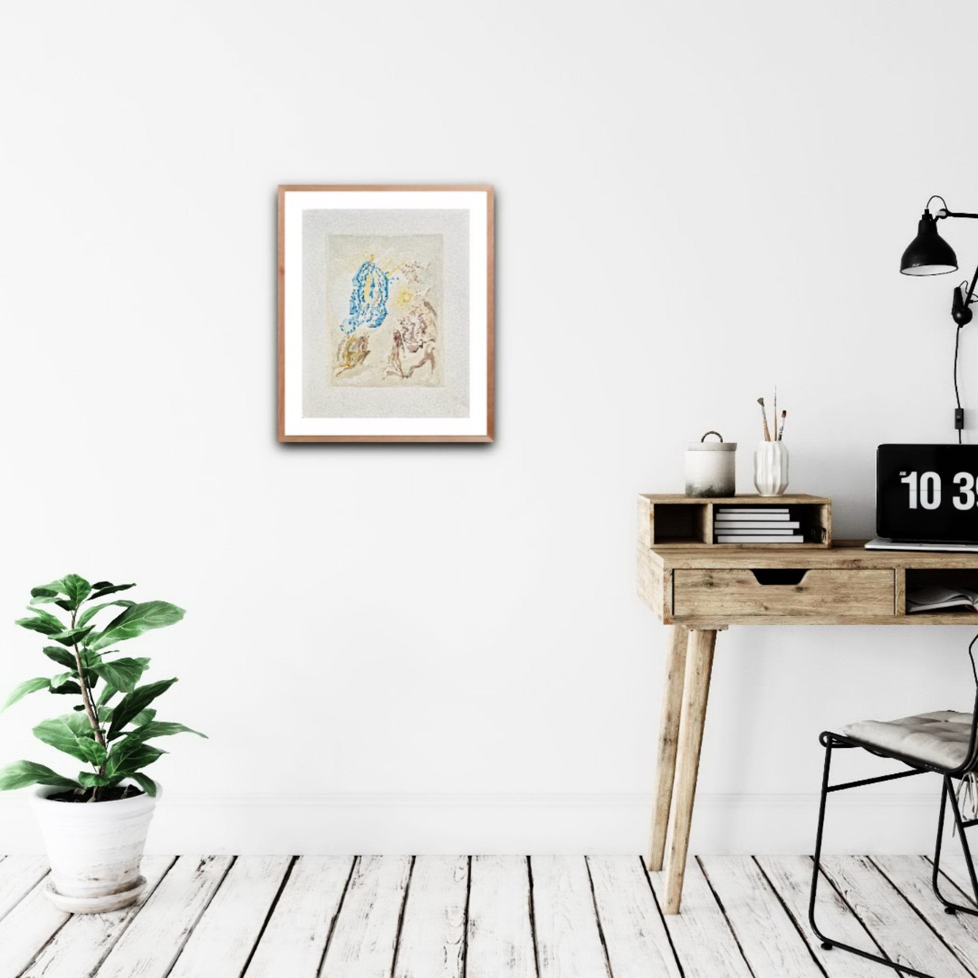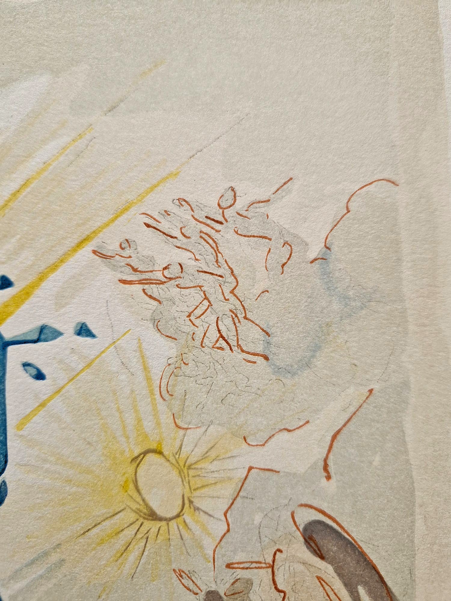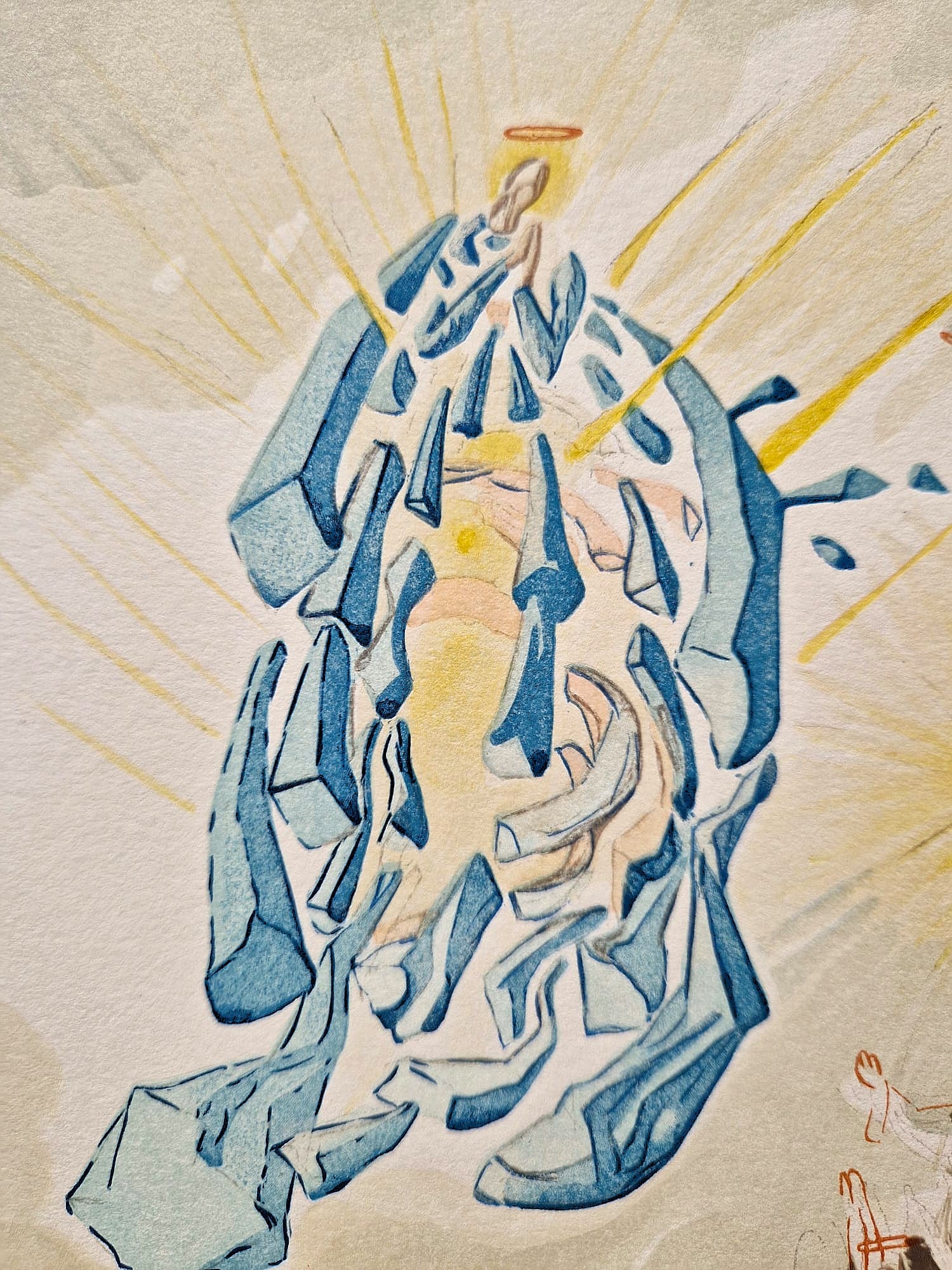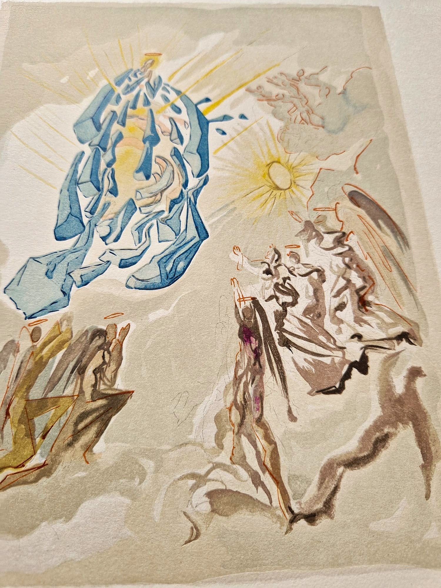 Originálna farebná drevorytina Salvadora Dalího zo série Božská komédia (Dante Alighieri), vytvorená medzi rokmi 1960 a 1964. Toto dielo je výsledkom monumentálneho projektu v spolupráci s parížskym vydavateľstvom Les Heures Claires . Každú ilustráciu starostlivo ručne vyryl majster rytec Raymond Jacquet , pričom na dosiahnutie bohatej farebnosti použil v priemere 35 samostatných drevených blokov na tlač. Zostáva jedným z najvýznamnejších grafických úspechov 20. storočia, ktorý spája Dalího surrealistickú víziu so stredovekou literárnou klasikou.